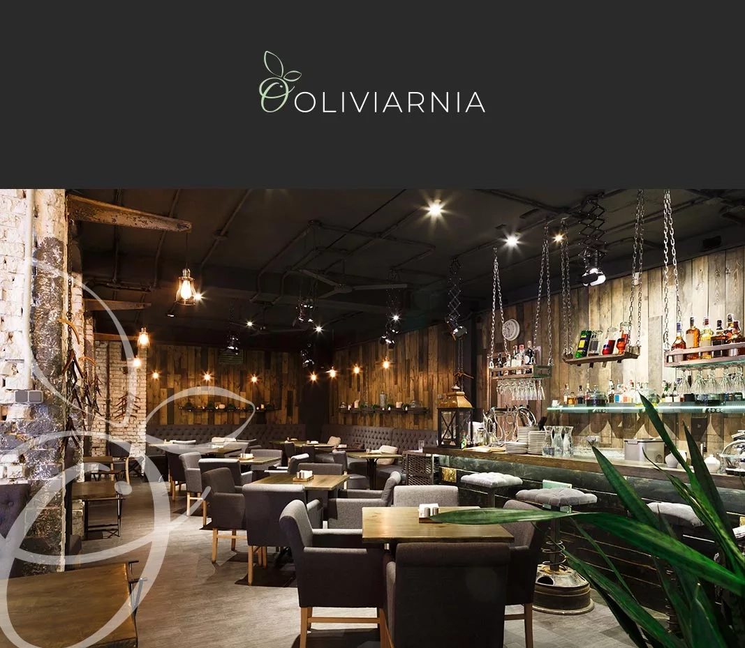 Charakterystyczna oliwka podkreśla włoską tożsamość restauracji - z jednej strony prostotę, z drugiej wysoką jakość oferowanych produktów. Stanowi doskonałe uzupełnienie logotypu, co wpływa na rozpoznawalność lokalu.